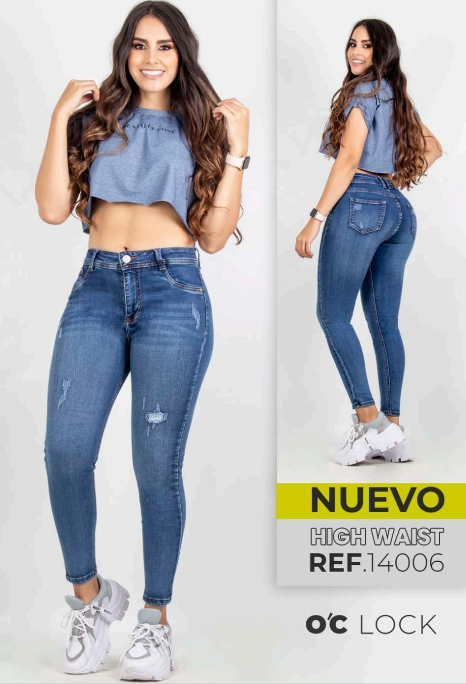 Disse jeansene har en høy midje, en design to baklommer, en beltestropp og en glidelås og knapper lukning. Jeans fra O`clock
