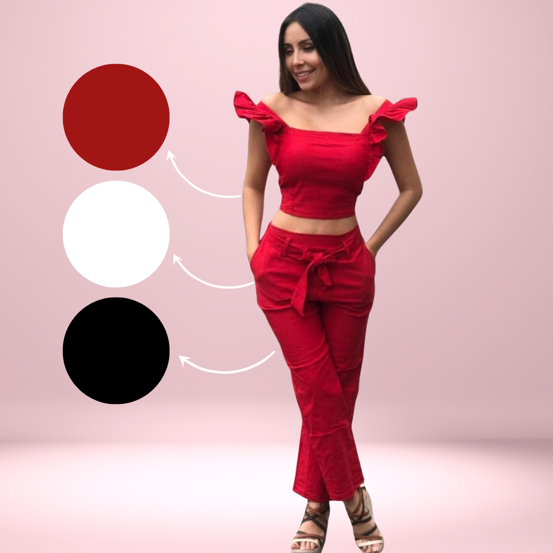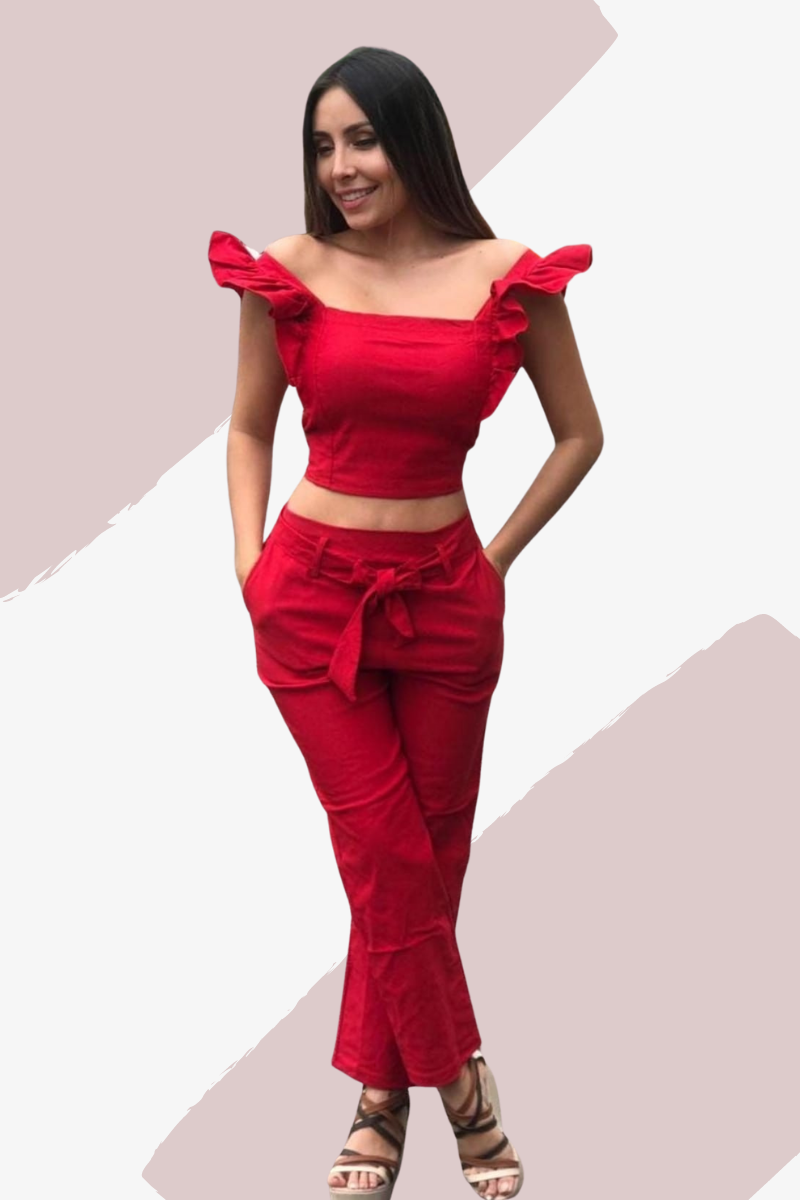 En ankellang slacks i elastisk, vevd kvalitet. Normalhøy midje med skjult elastikk og sidelommer.