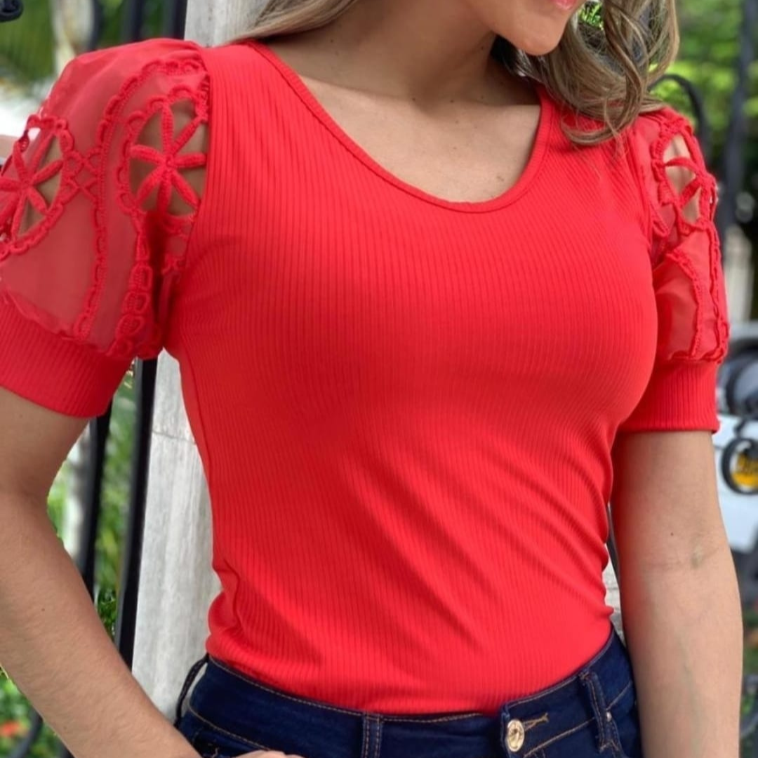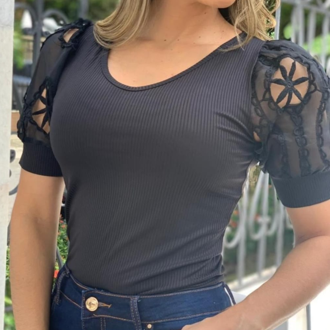 Bluse med Brodert Puffermer