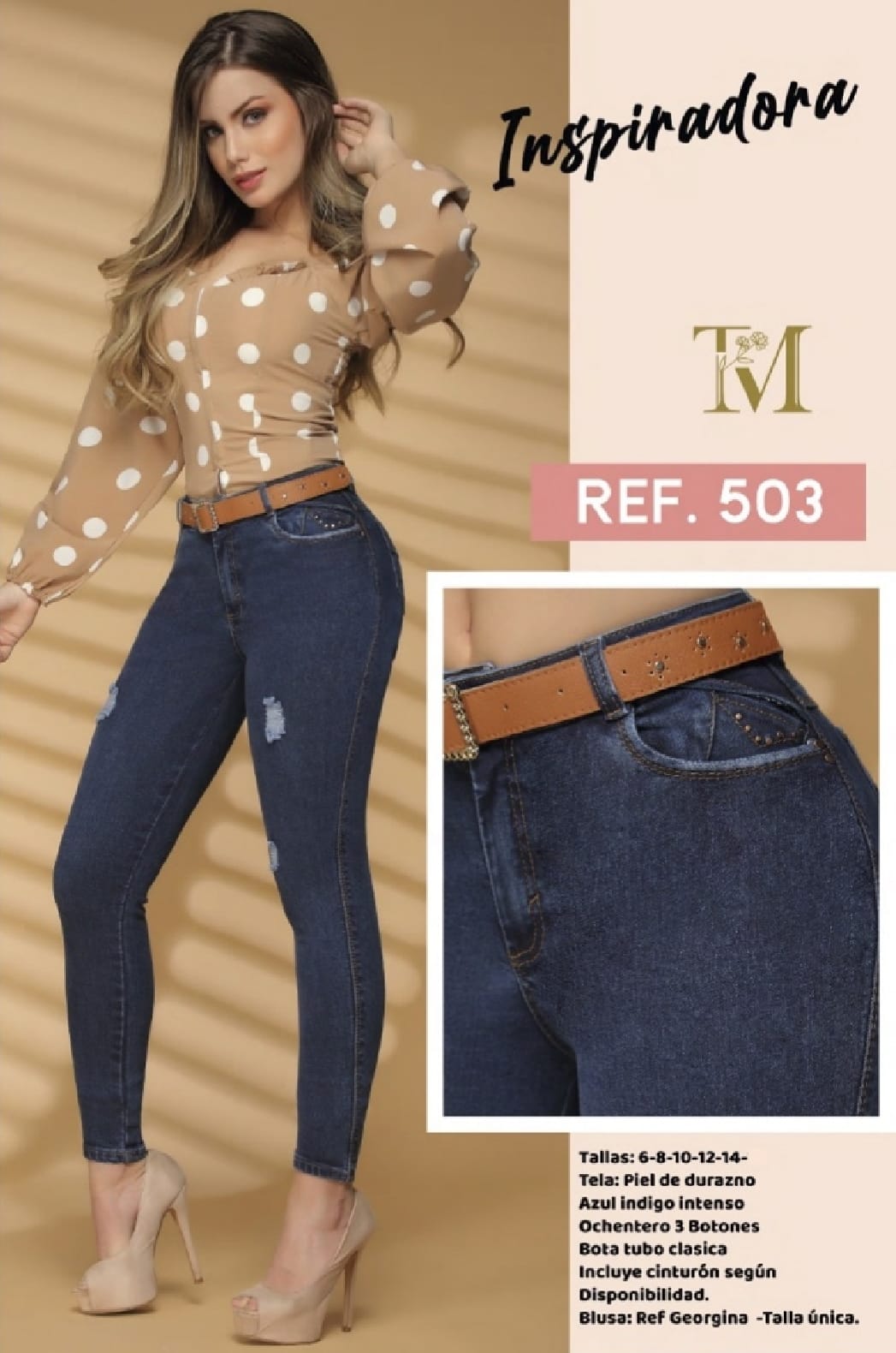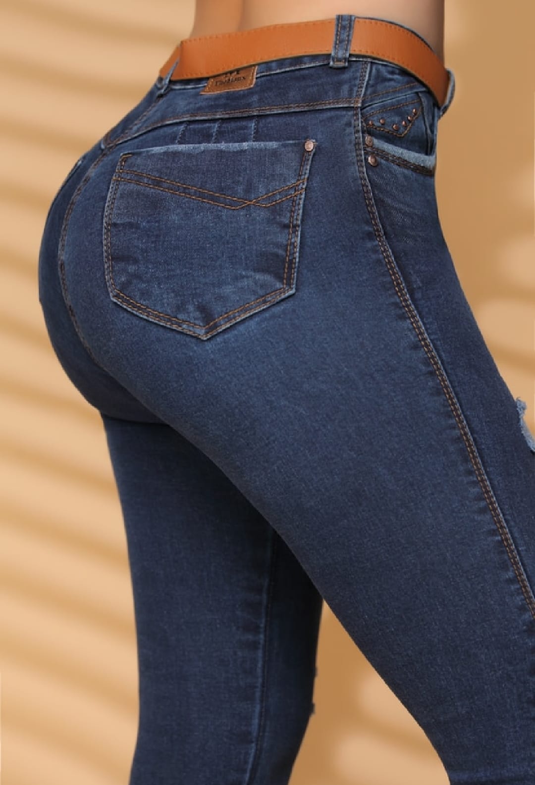 Jeans fra TMPush-up effektenSkinny fitStretchy denimHøy midjeTre knapp og en giddeløstFem lommerFarge: blåModellen er 173 cm lang og har størrelse 38