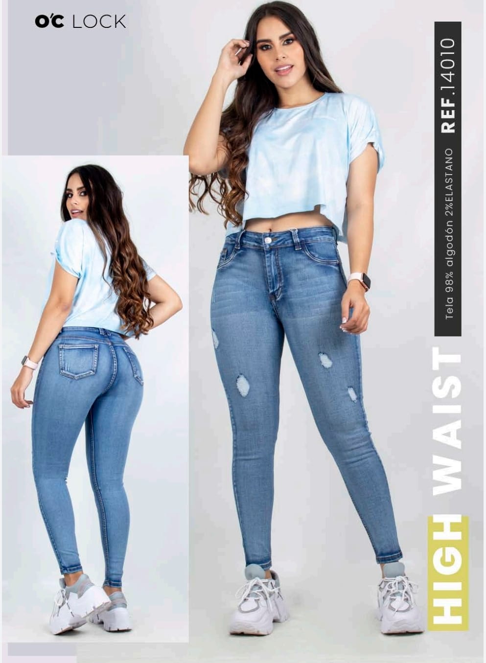 Disse jeansene har en høy midje, en design to baklommer, en beltestropp og en glidelås og knapper lukning. Normal i størrelsen.