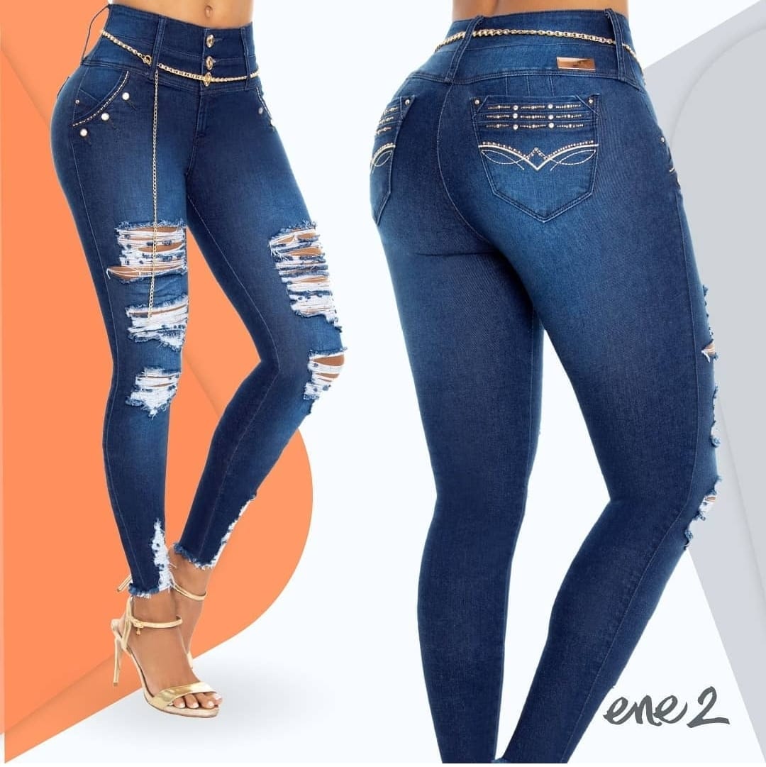 Superstretch highwaist-jeans med en høy midje. Jeansene er blå og har en tilpasset, komfortabel passform med smale buksebein. De har jukselommer foran og ekte baklommer.