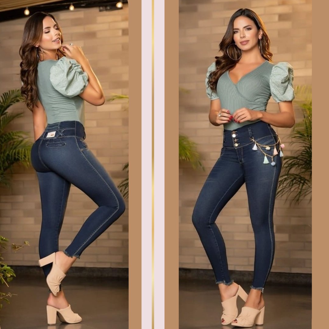 High Waist skinny fit med push-up effekten og ankellengde. Veldig god stretch gjør den behagelig på hele dagen! Kul detalj med frynsete kant nederst.