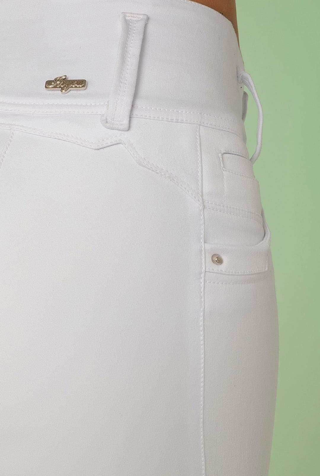 tre knapper, tråder til tonen. Design med høy skinny silhuett med mage kontroll og et montert snitt fra livet til leggen. Ingen baklommer,