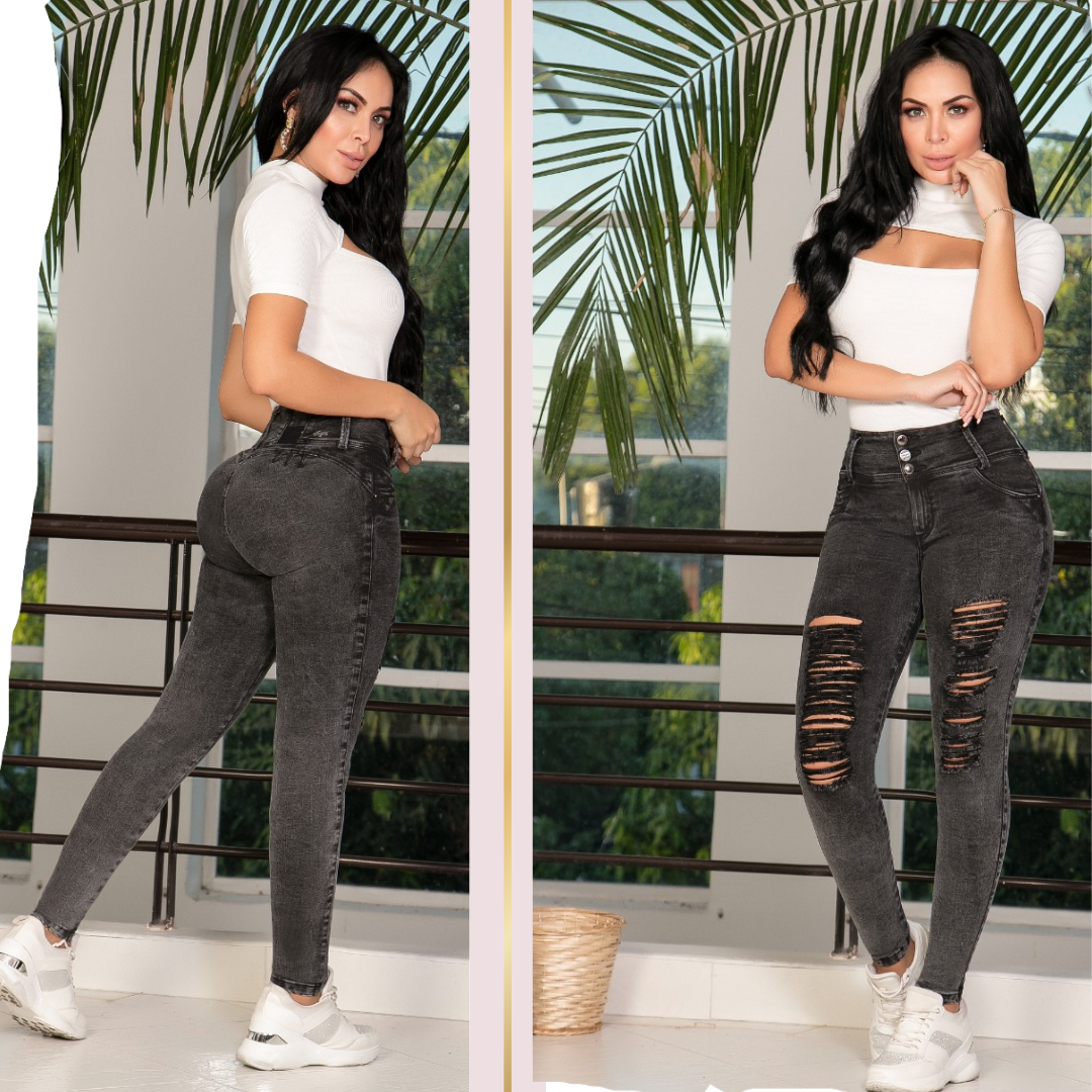 High Waist skinny fit med push-up effekten og ankellengde. Veldig god stretch gjør den behagelig på hele dagen!